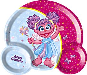 Each Abby Cadabby plastic divided plate measures 7 3/4" x 7". Each plate is made of durable plastic and can be reused. Each plate features Abby Cadabby on a pink and light blue background.